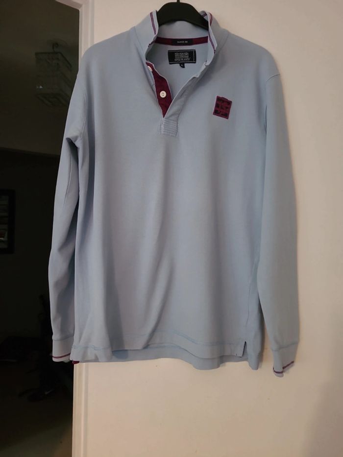 Polo manches longues Serge Blanco gris bleuté taille L bon etat