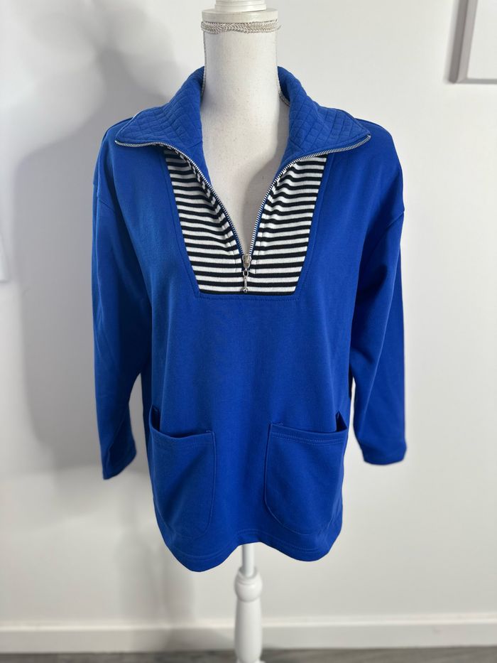 Sweatshirt camionneur bleu électrique et marinière Laura Daniel’s Vintage T38 M
