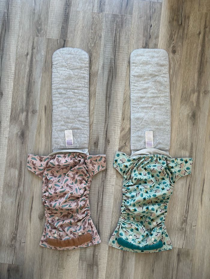 2 couches un en un Une rose motif léopard et un bleu motif paresseux Taille de la naissance à la propreté grâce aux clips à l’avant pour adapter la taille Marque bambino mio En très bon état, lavées et entretenu selon les consignes couches lavables Une couche est vendue neuve 20,99 euros