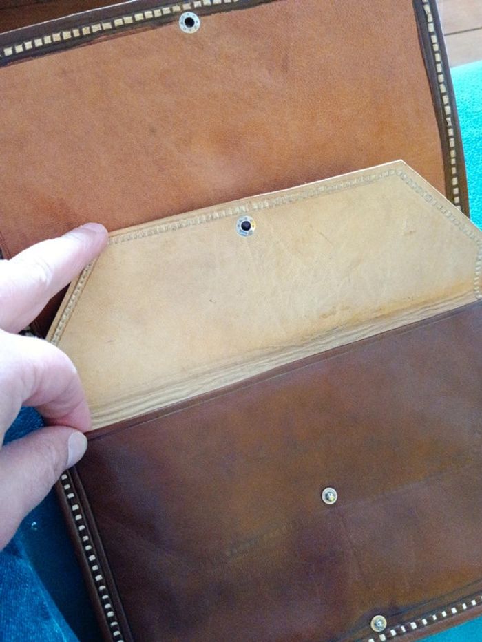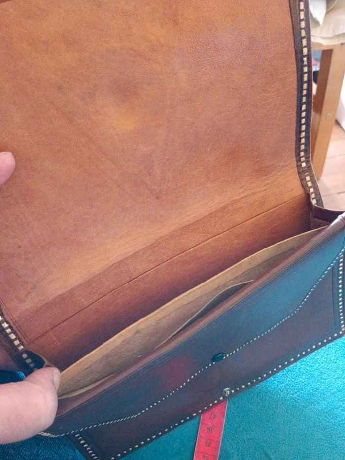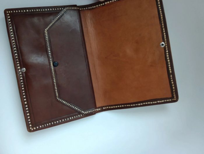 Petite pochette vintage en cuir marron dessins blancs - photo numéro 7