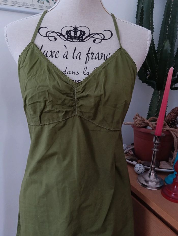 Robe vintage kaki en coton, dos croisé taille 38/40 - photo numéro 2