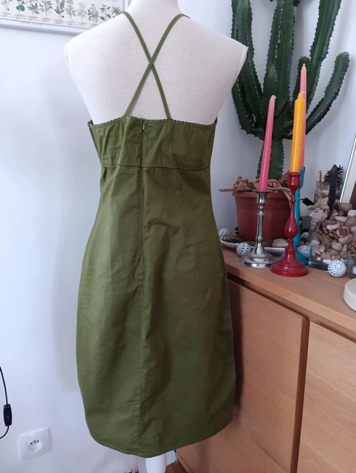 Robe vintage kaki en coton, dos croisé taille 38/40 - photo numéro 4