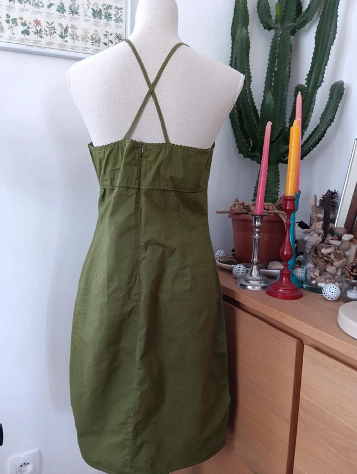 Robe vintage kaki en coton, dos croisé taille 38/40 - photo numéro 7