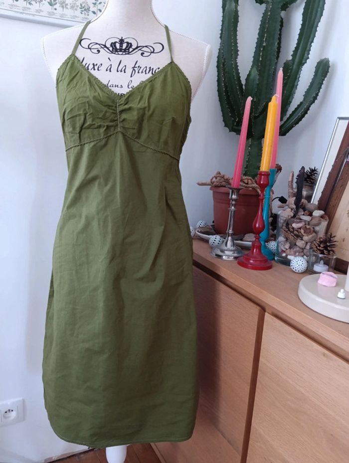 Robe vintage kaki en coton, dos croisé taille 38/40 - photo numéro 1