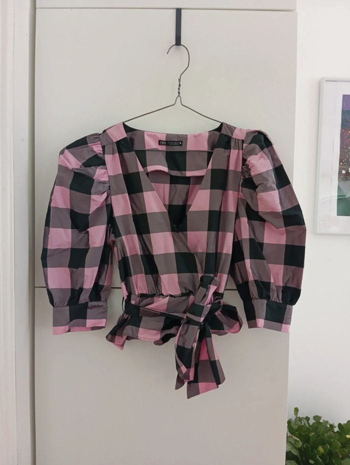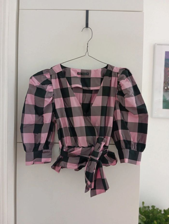 Blouse cache coeur carreaux Zara taille S - photo numéro 1