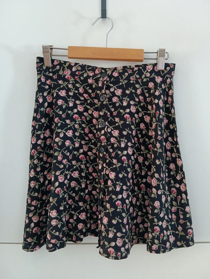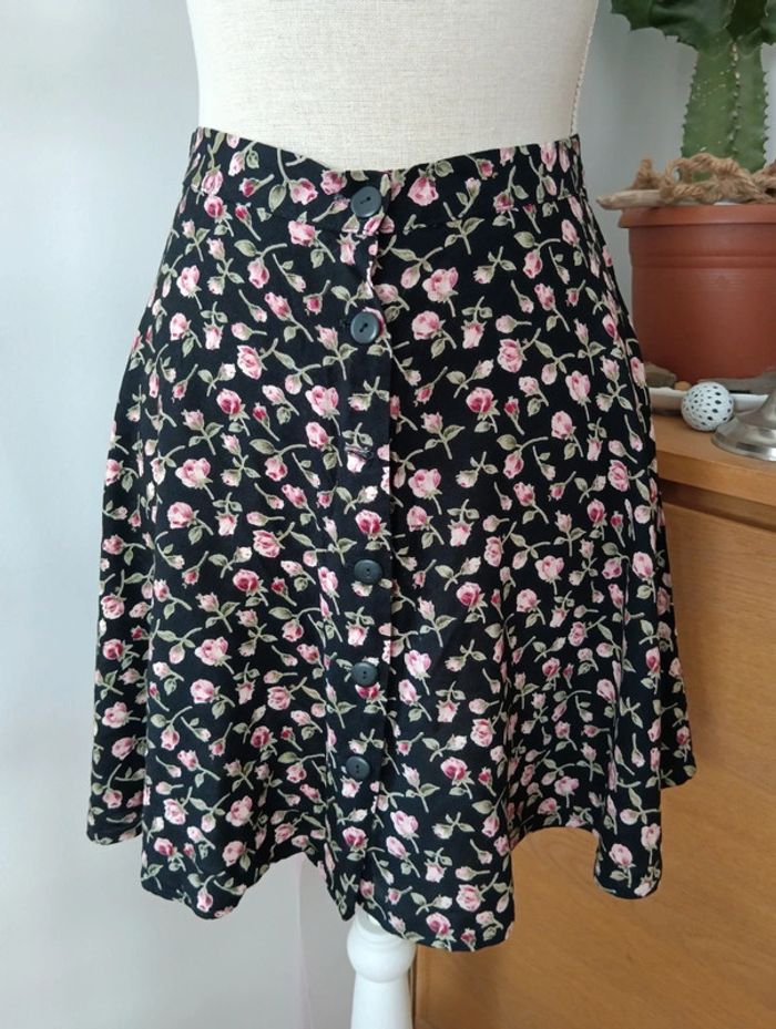 Jupe vintage patineuse fleurie avant boutonné - photo numéro 1