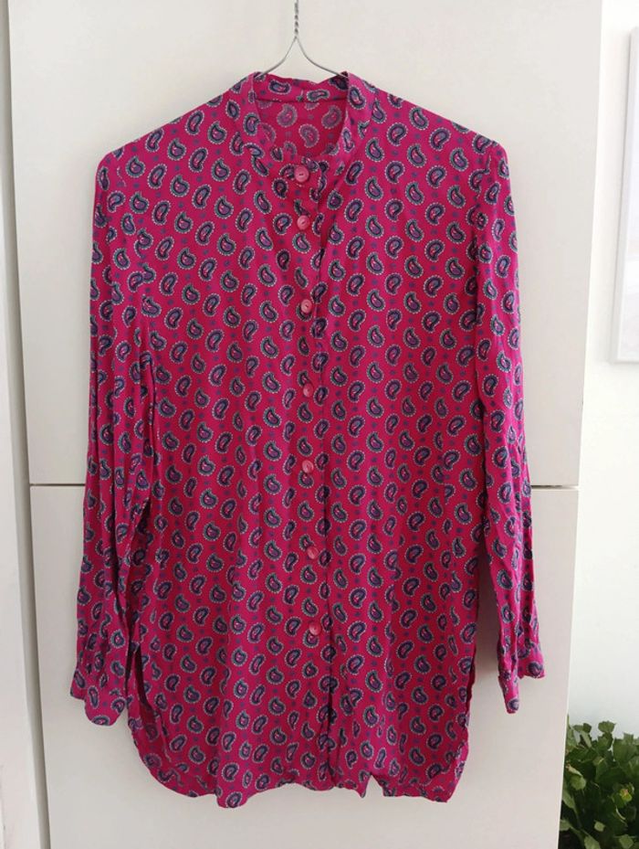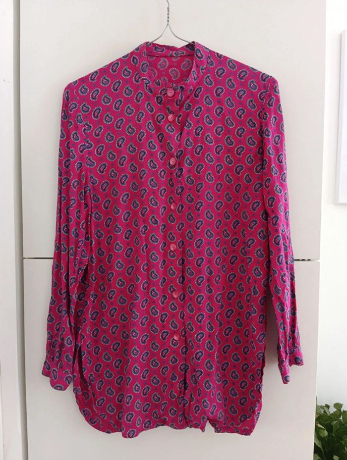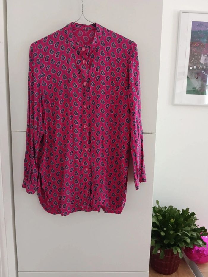Chemise vintage longue fushia manches longues imprimé provençal - photo numéro 2