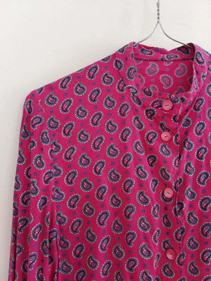 Chemise vintage longue fushia manches longues imprimé provençal - photo numéro 5
