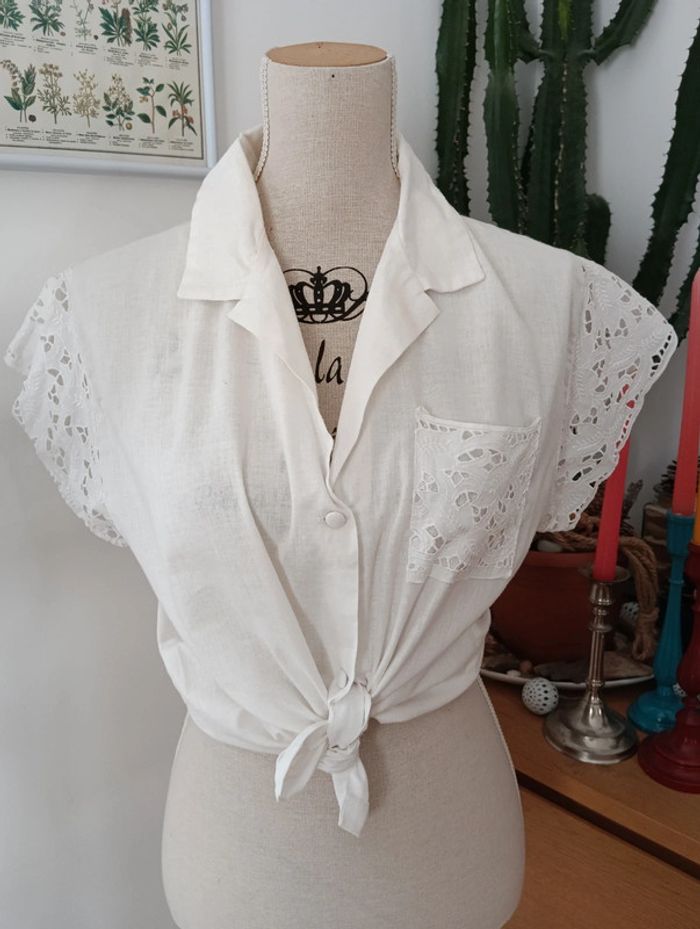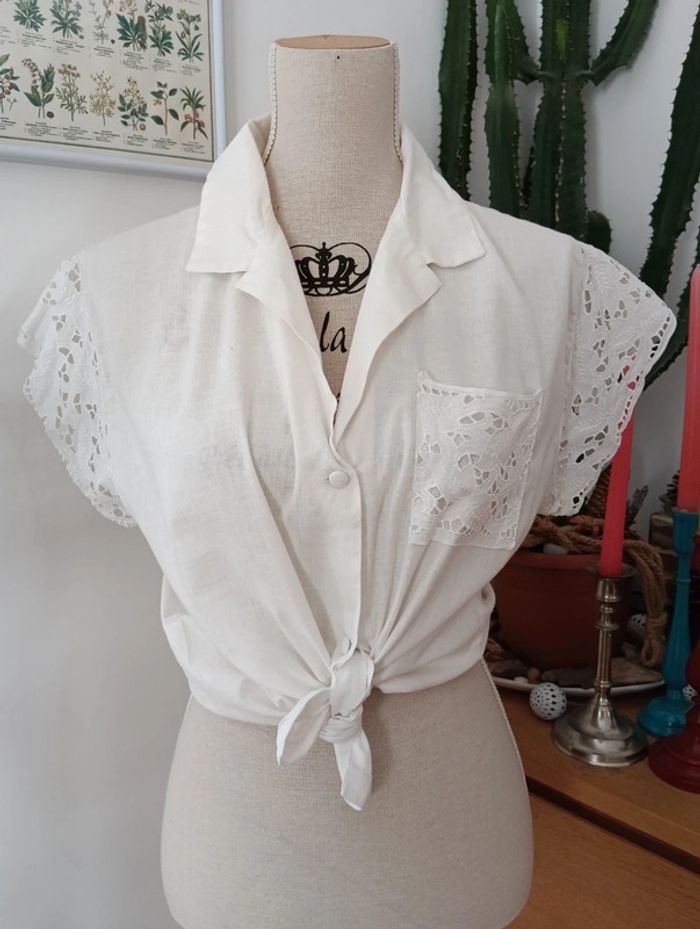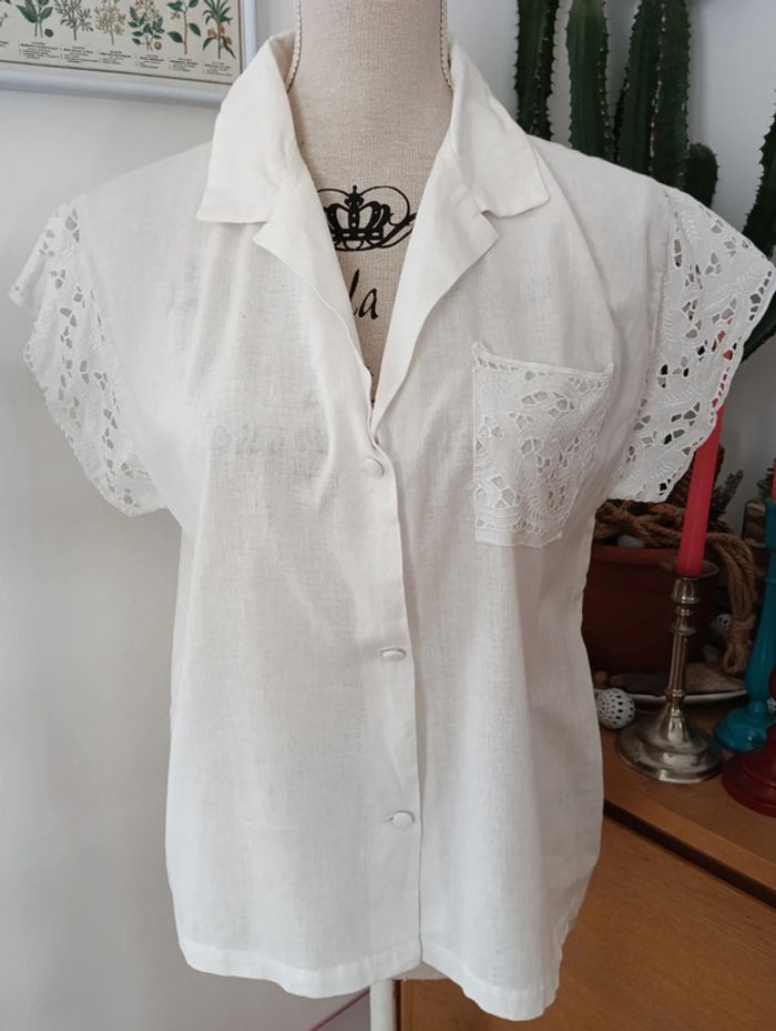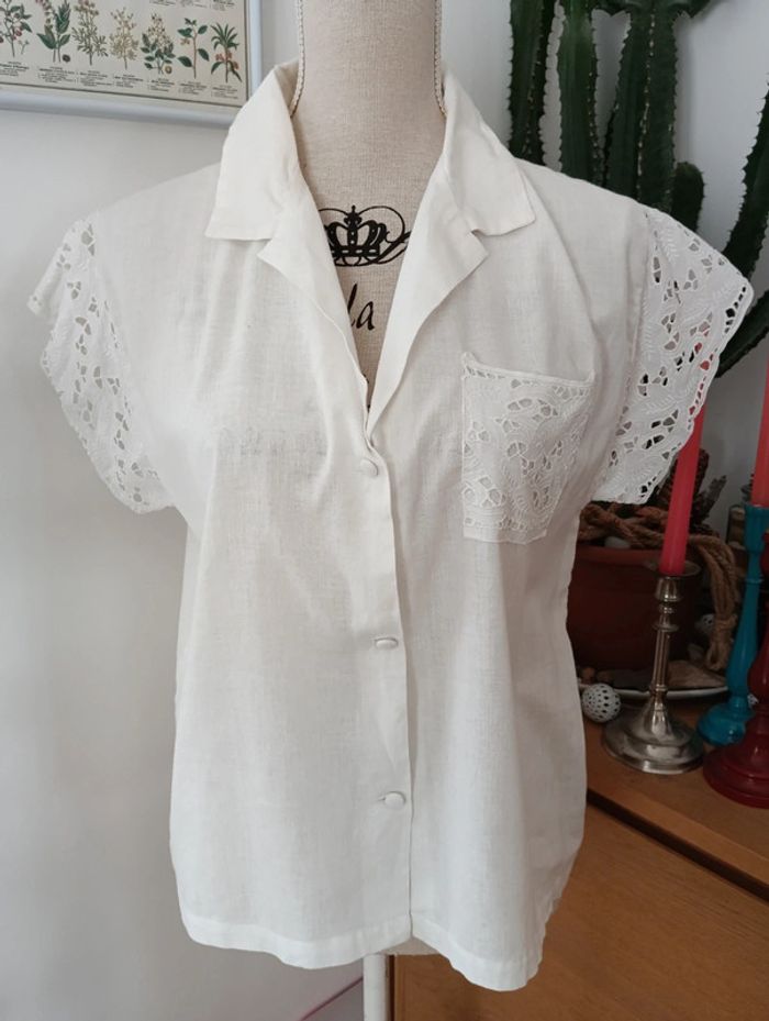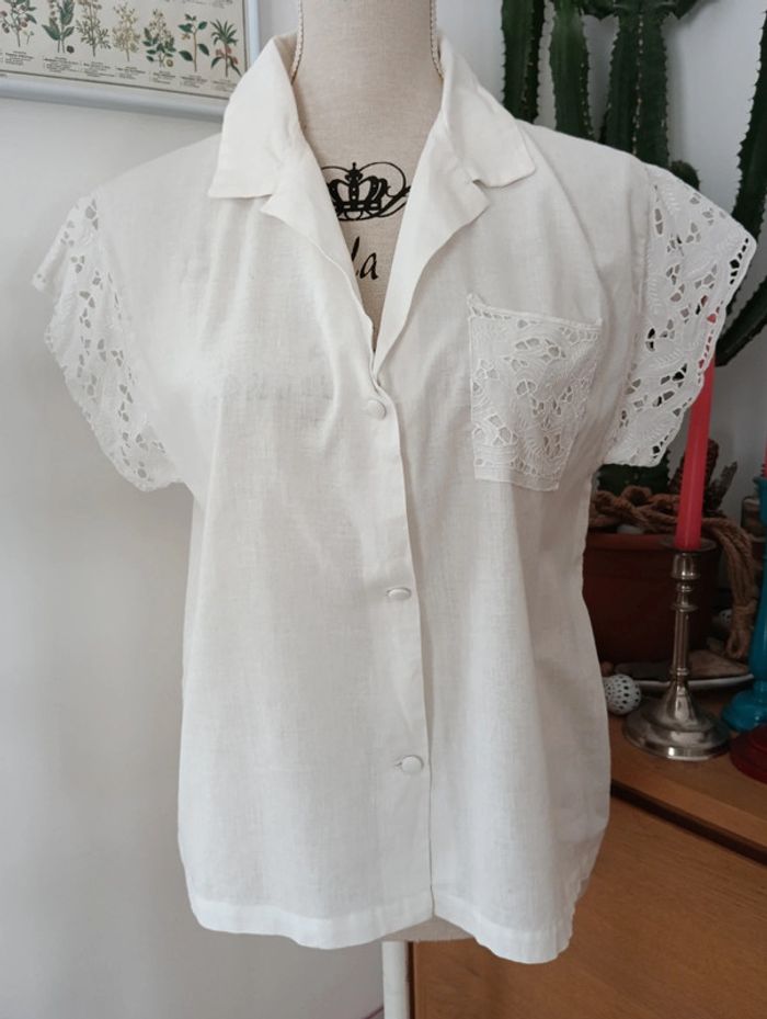 Chemise blanche vintage détails dentelle taille 40 - photo numéro 1