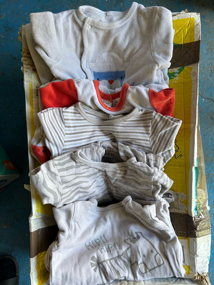 Lot de vêtements 18 mois : 2 polos manche courte 1 tee shirt manche courte 1 pantalon retroussable en short 3 gilets zippés 5 tee shirt manches longues 5 bodies manches courtes 5 pyjamas Le tout en très bon état Différentes marques