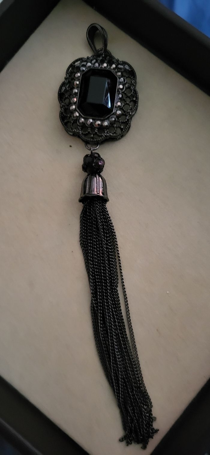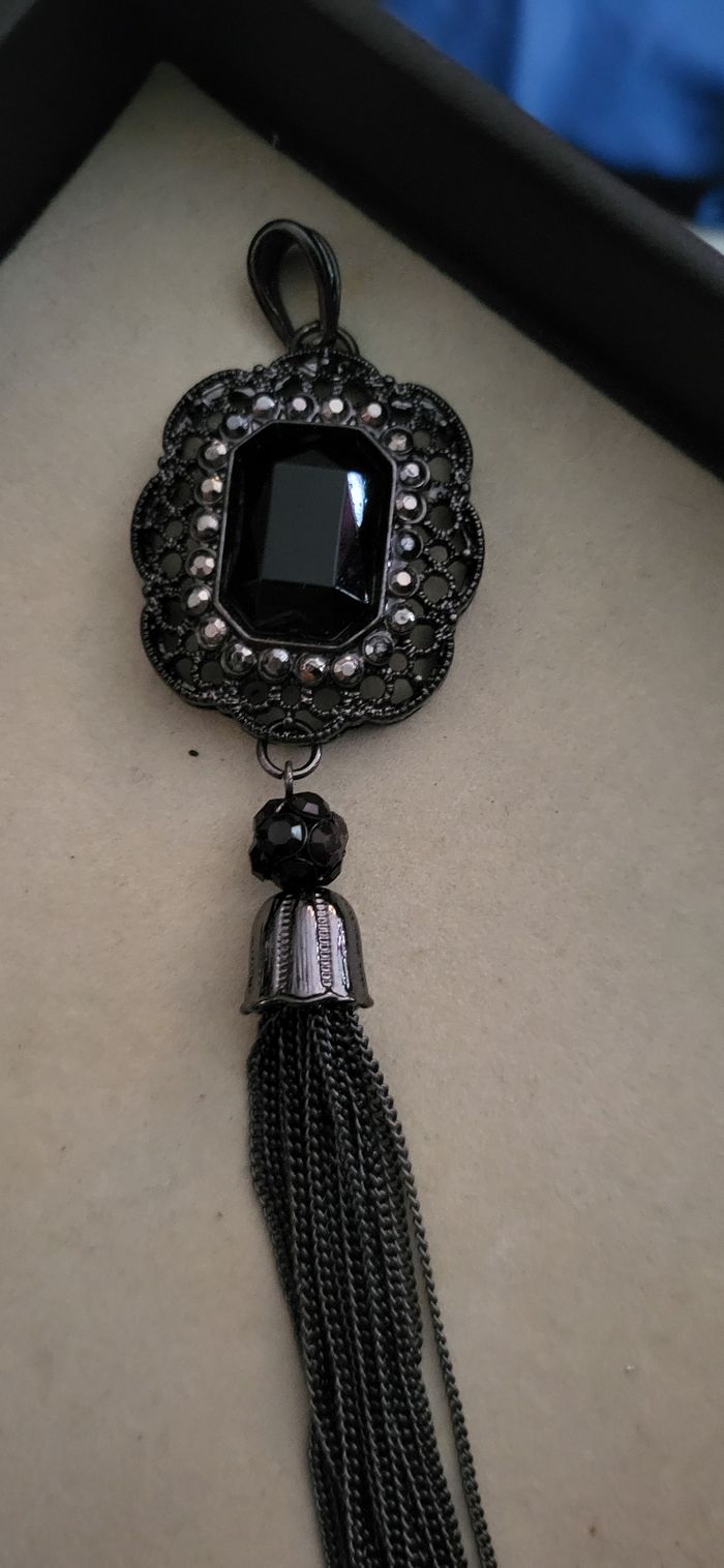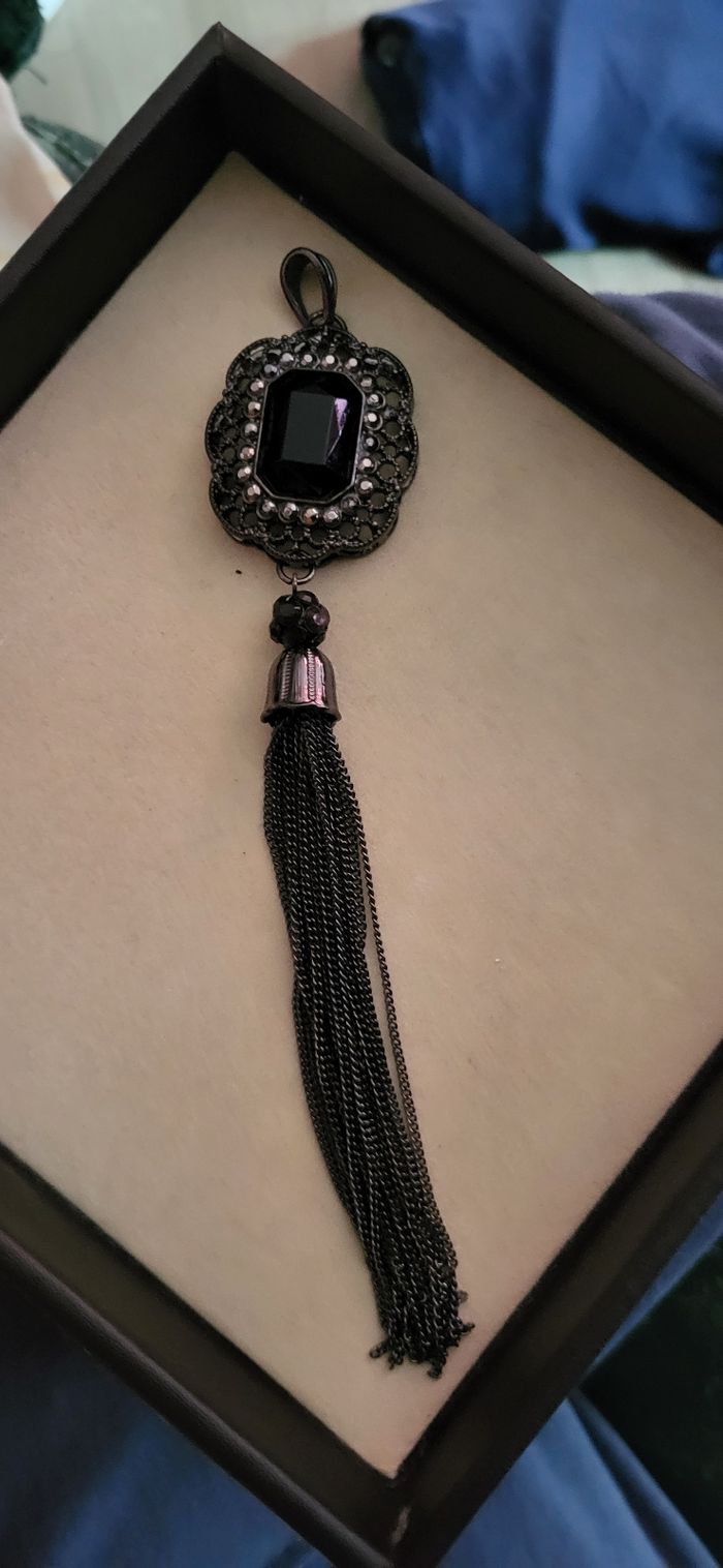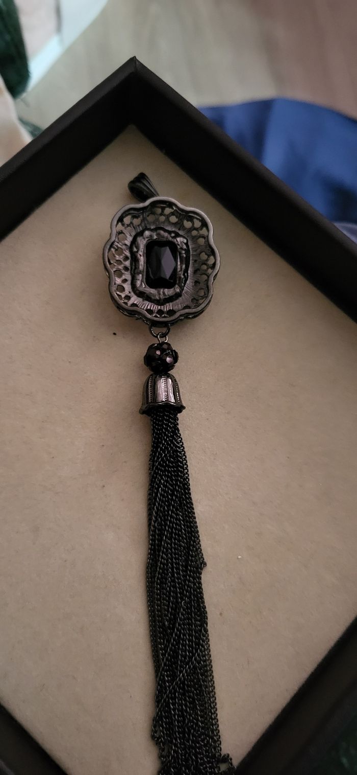 Magnifique pendentif en tres bon etat. 16cm de longeur total.