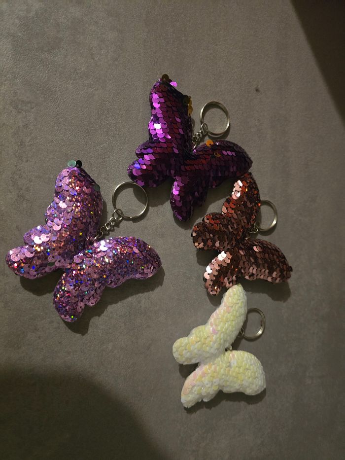 Bonjour 👋 Je vend ce: 👉 Lots de quatres porte clé papillon sequin reversible Maisons 🏠 non fumeur et sans animaux