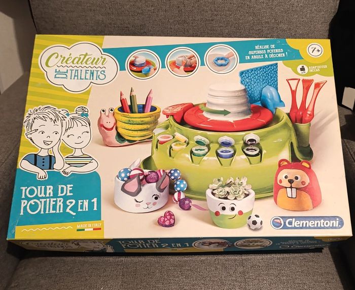 Tour de potier 2en1 a été utilisé 1 ou 2 fois donc est en très bon état dans sa boîte d'origine. Prévoir de l'argile Fonctionne avec un chargeur inclus ou avec des piles non incluses. #jouetadel73460 #jeuxadel73460 #poterie #tourdepoterie #atelierdepoterie #clementoni