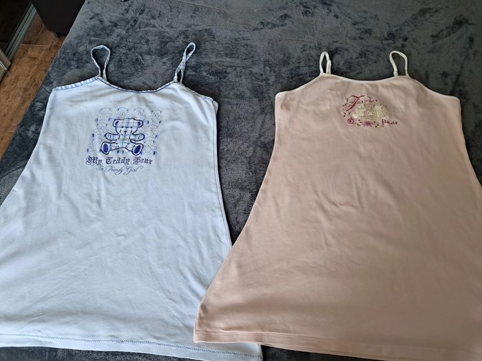 lot 2 nuisettes coton, 46-48 (la bleu est indiqué 42-44 mais aussi large que la rose), bretelles reglables sur la rose, marque Tex, excellent état