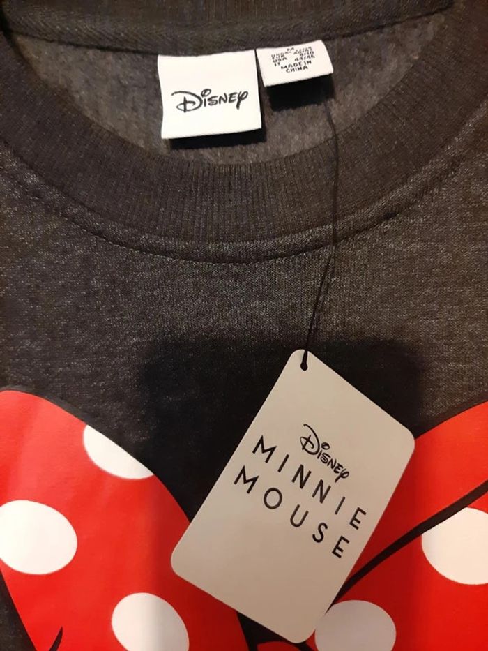 magnifique sweat shirt Minnie Mouse neuf avec etiquette, intérieur tout doux, taille M, (indiqué 40-42 sur etiquette), couleur majeure gris soutenu, marque Disney