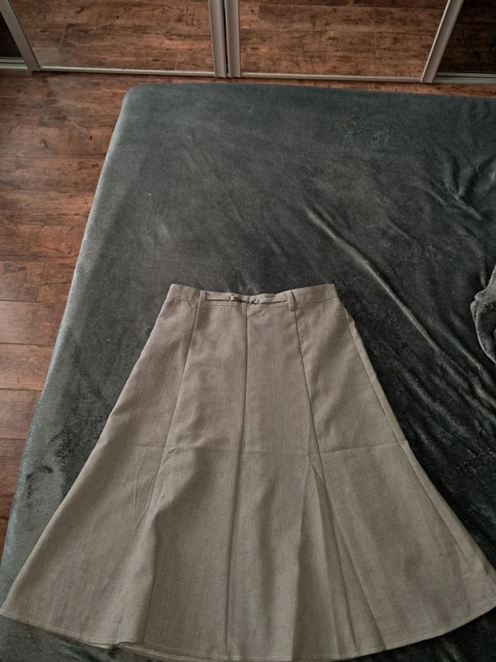 jupe mil longue (mollet), évasée, couleur gris, elastique tout le long du dos, 100% polyester, taille 42, marque Damart