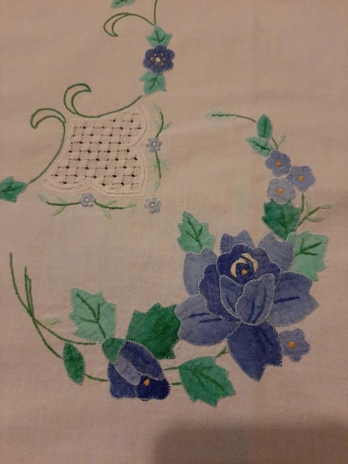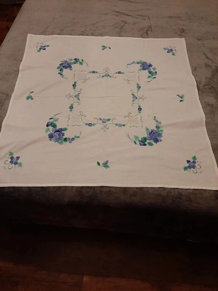 nappe carré (82/84 environ) en coton, toute brodée, jamais utilisée