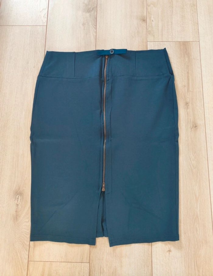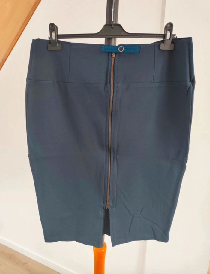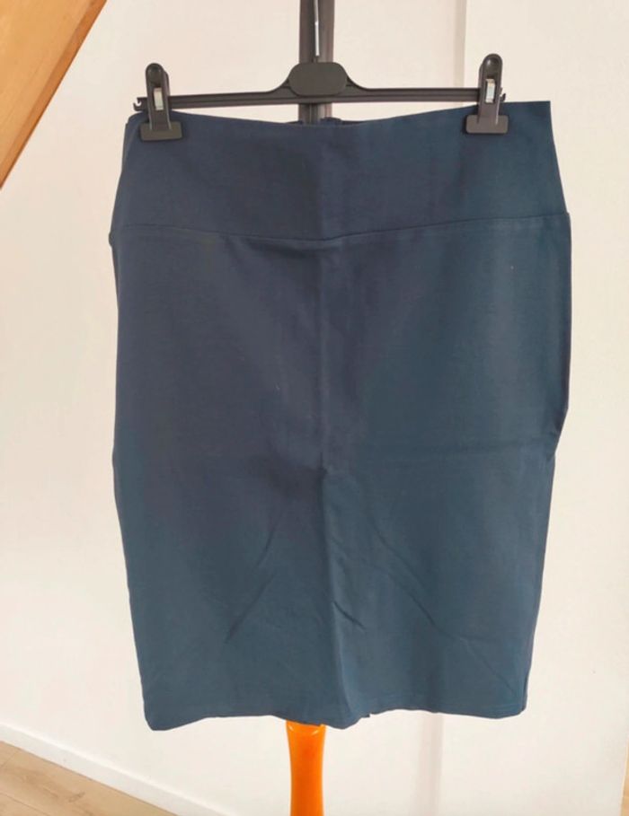 Vend jupe marine J'ai ajouté un élastique et un bouton dans le dos par sécurité (voir photo) Longueur de haut en bas 72 cm Taille : 50 Très bon état #lesfemmesengt