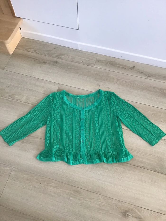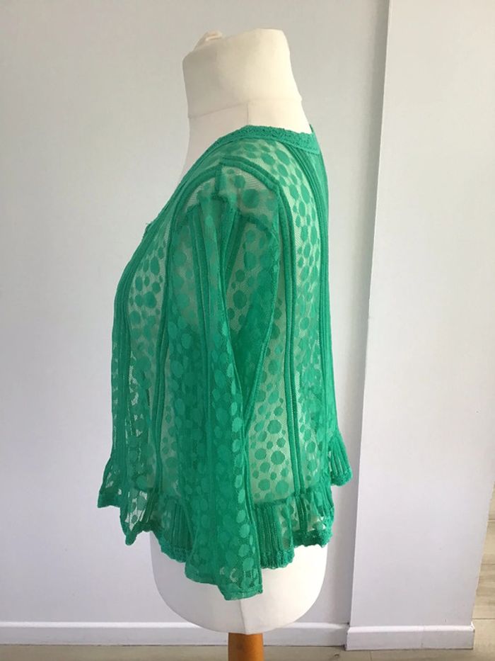 Vend haut court vert femme Transparent Manches 3/4 Taille : 42 (pas d'étiquette) Bon état #lesfemmesen42