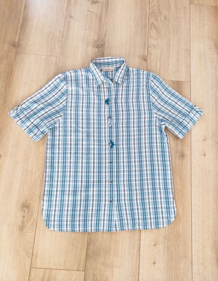 Vend chemise bleue et blanche femme Manches courtes Taille : 42 Marque : C&A Bon état #lesfemmesen42