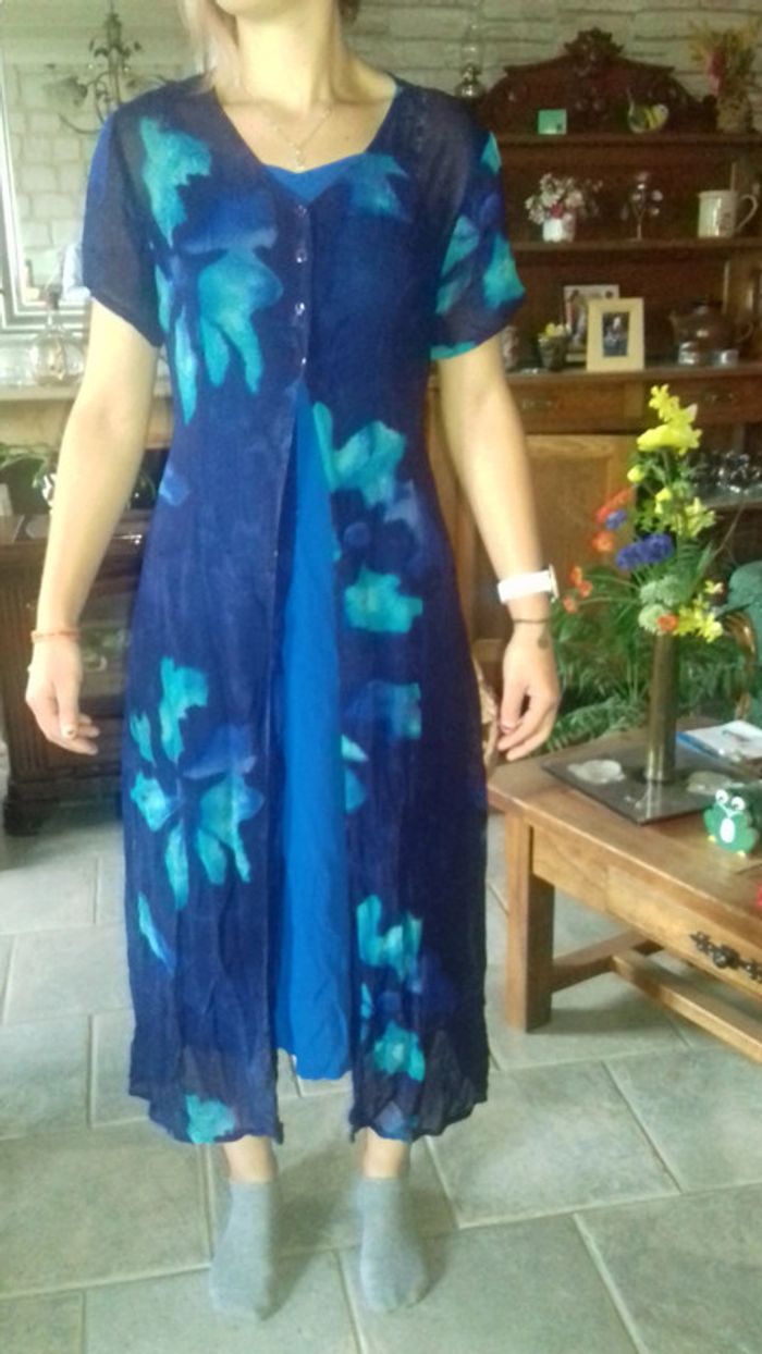 Robe longue en 2 partie, une robe bleue à fine bretelles et le voile à mis manche que l on rajoute au dessus jamais mis taille 38 N hésitez pas à faire un lot je ferai un prix 😉 #robeneuf38