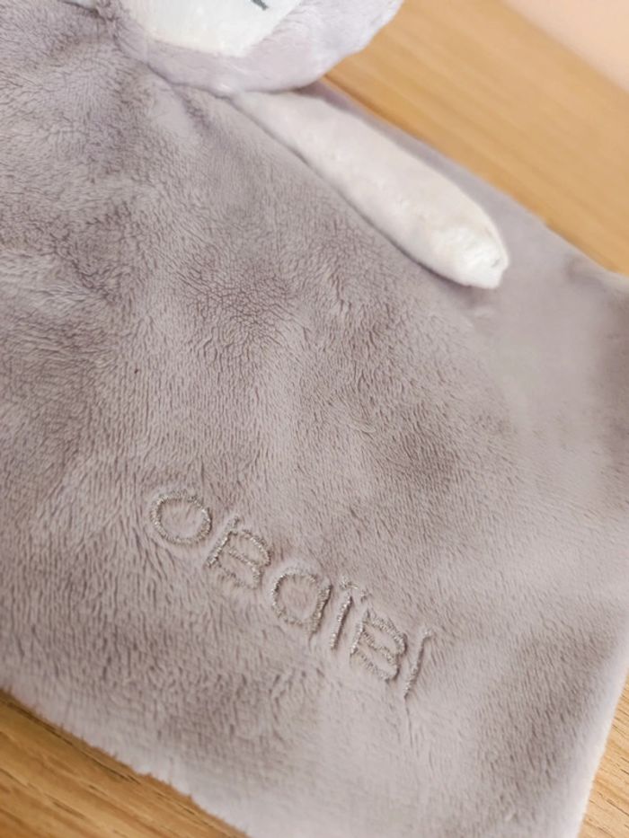 Doudou plat chat 🐱 gris Tissu blanc rayé Marque obaibi Parfait état Envoie rapide 📦