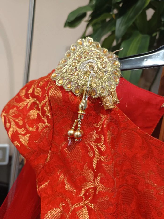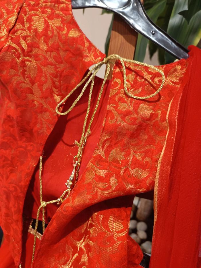 Tenue lenga rouge et or Manque la ficelle pour la jupe il faut en repasser une Certains détails en fils dorés sont un peu tirés voir photo Lehenga