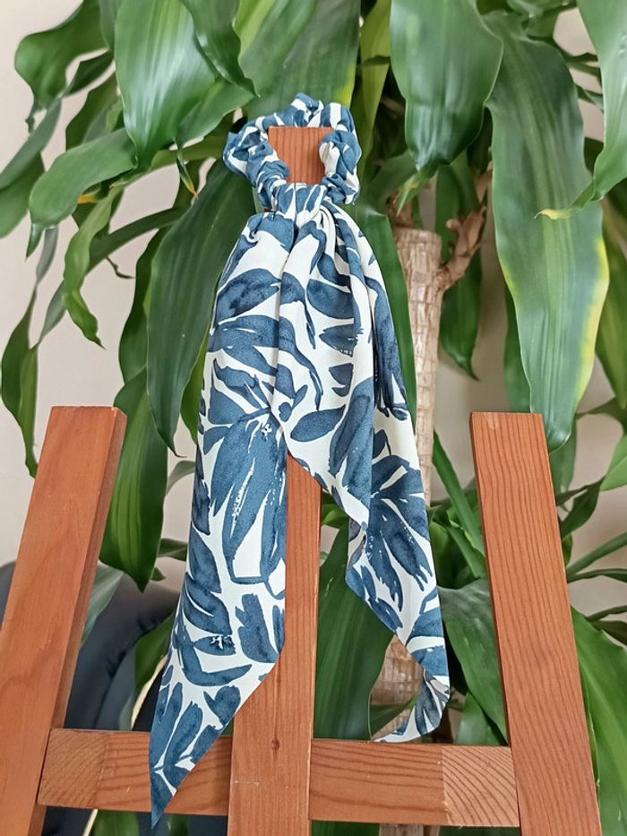 Chouchou foulard bleu feuillage - photo numéro 1