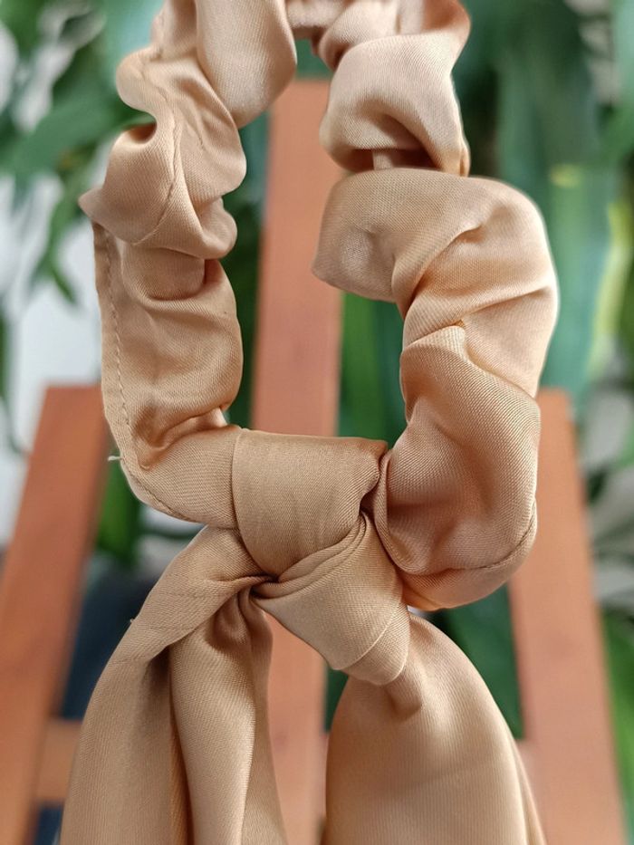 Chouchou foulard en satin beige doré - photo numéro 1