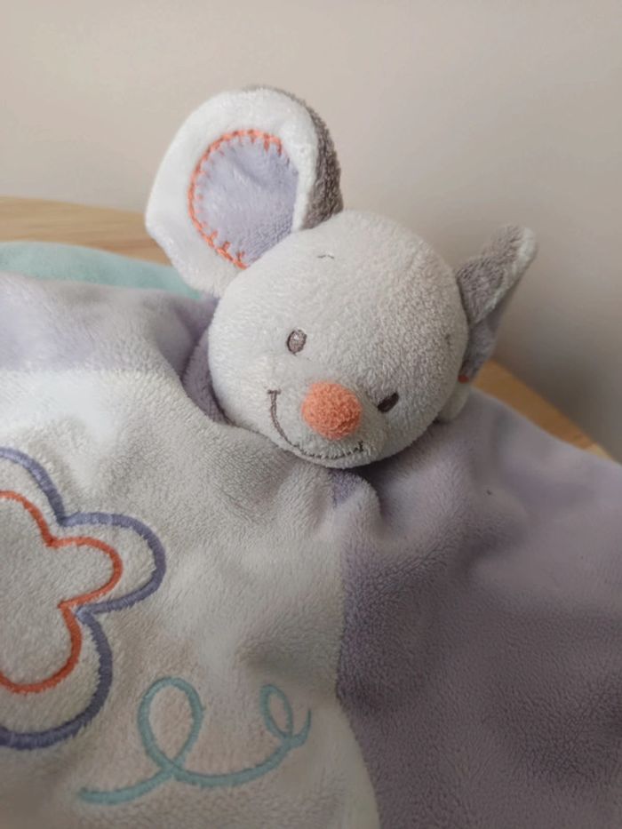 Doudou plat souris violet/mauve blanc et corail Marque Nattou Très bon état Expédié sous 24h 📦