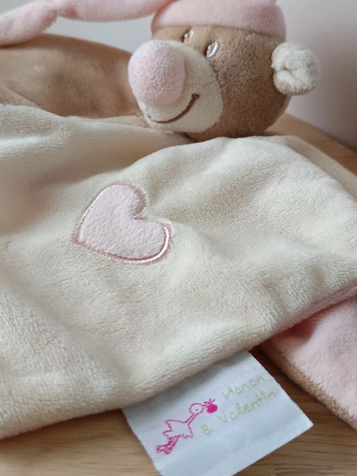 Doudou ours beige bonnet rose Manon et Valentin - photo numéro 2