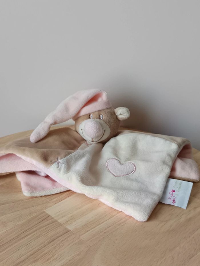 Doudou ours beige bonnet rose Manon et Valentin - photo numéro 3