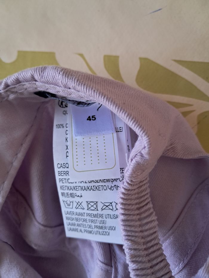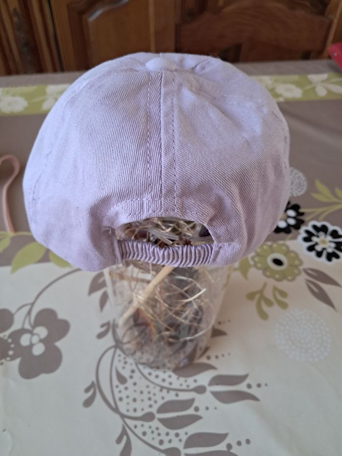 Casquette lilas avec motif et écriture en doré 45cm