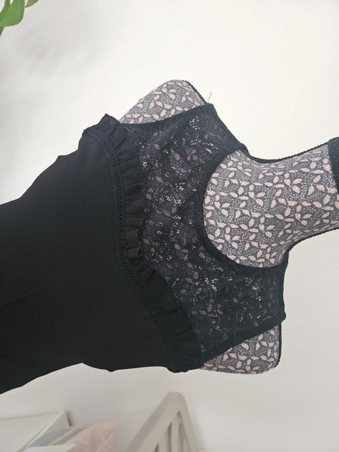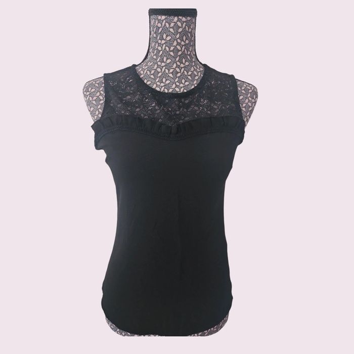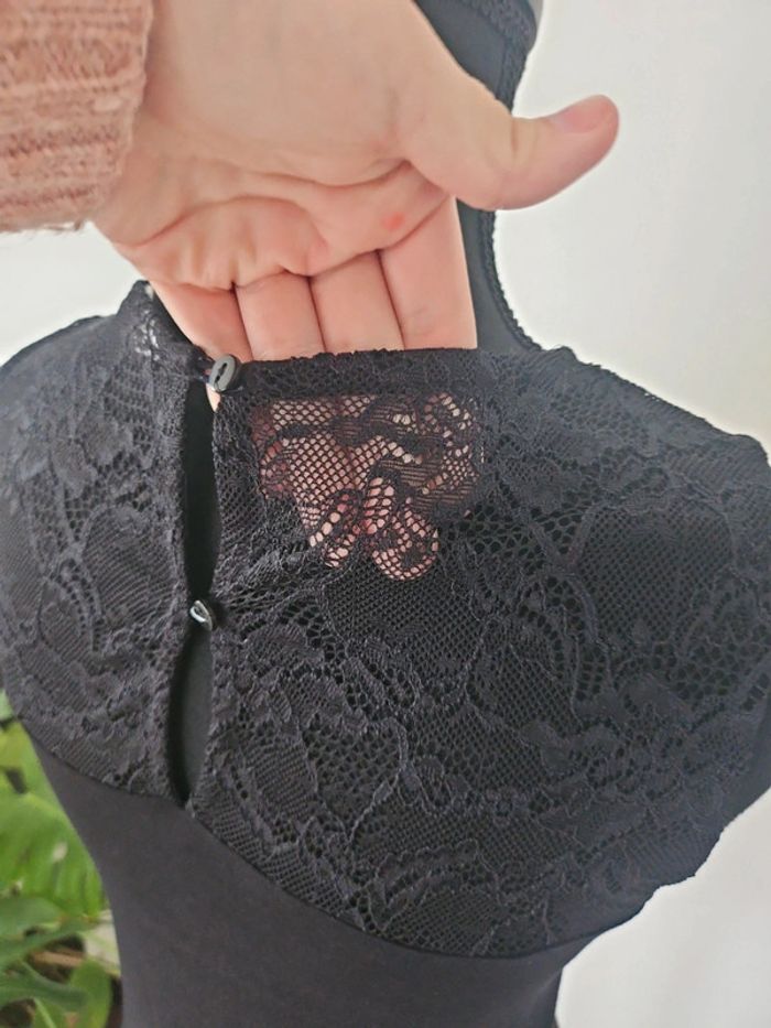 🗂 Catégorie: #amandinebontaille34xsfemme 📏 Taille: XS ®️ Marque: Naf naf 🌎 Pays de Fabrication: Turquie 🎨 Colories: Noir 🌻 Thème/motif: Uni et dentelle 🧶 Composition: 57% polyester, 38% viscose, 5% élasthanne. 💐 Détails supplémentaires: Haut du débardeur en dentelle, 2 boutons en haut du dos. Pas de photos portées. Mis en vente le 26.04.25 🇸🇳