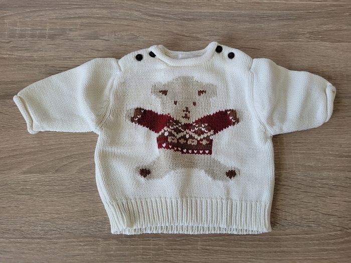 Vend lot de 2 hauts garçon taille naissance en bon état comprenant un pull avec motif nounours et un tee-shirt manches longues.