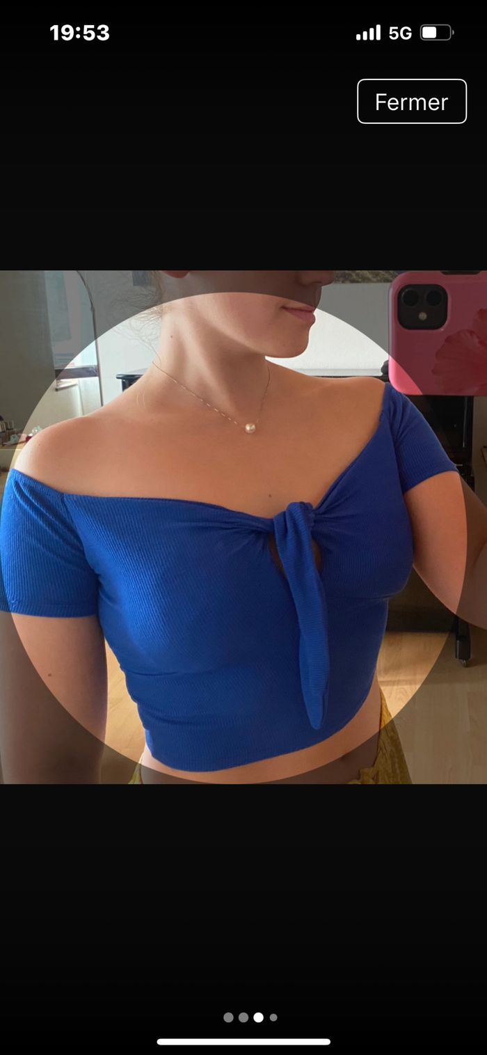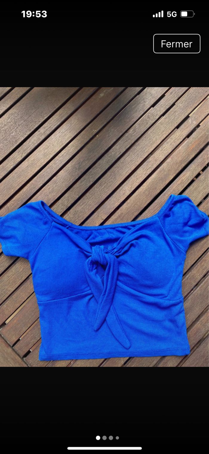 T-shirt crop-top avec noeud bleu - photo numéro 3