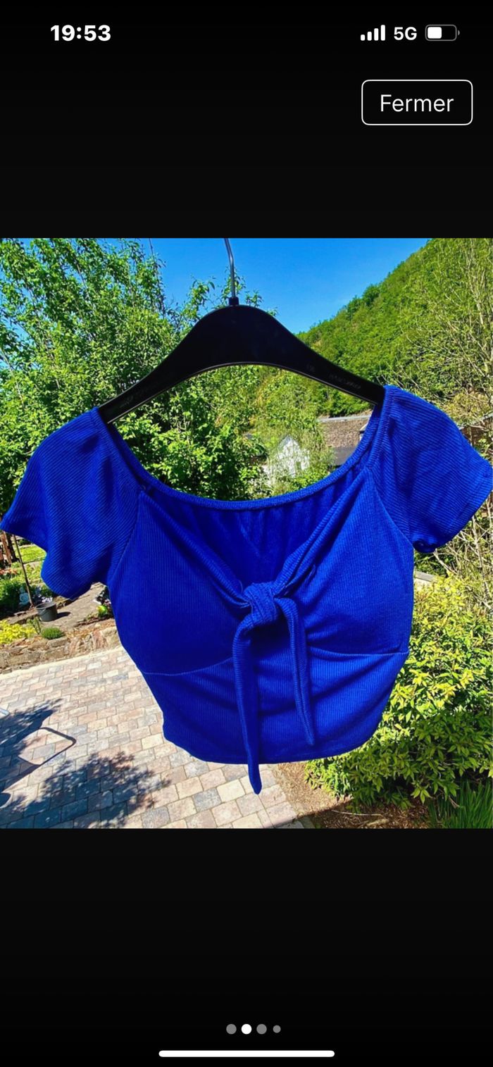 T-shirt crop-top avec noeud bleu - photo numéro 1