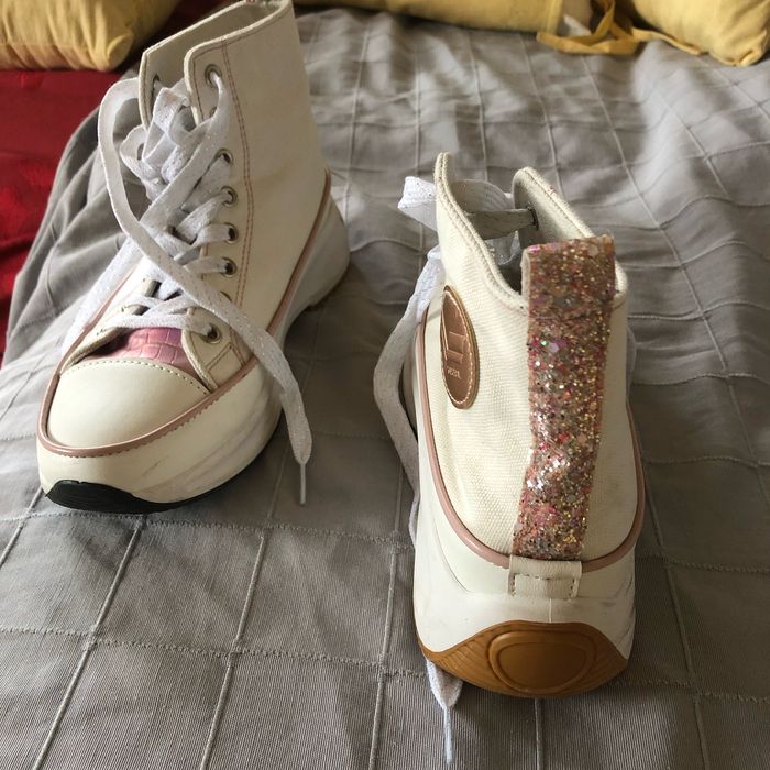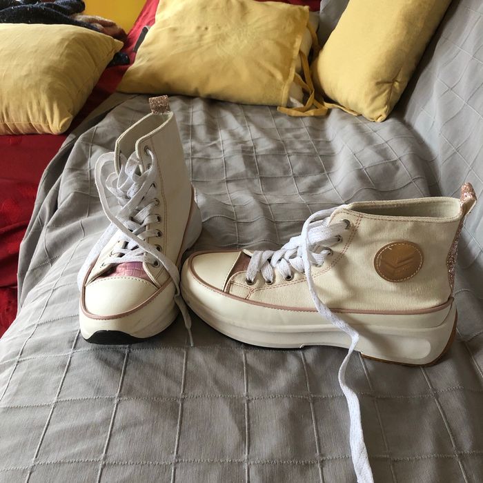 Baskets montantes très peu portées style converse. Très bon état presque neuve . Pointure 40 mais taille petit