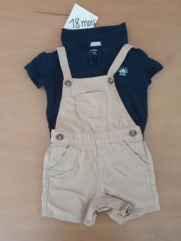Ensemble salopette short - polo garçon 18 mois - photo numéro 1