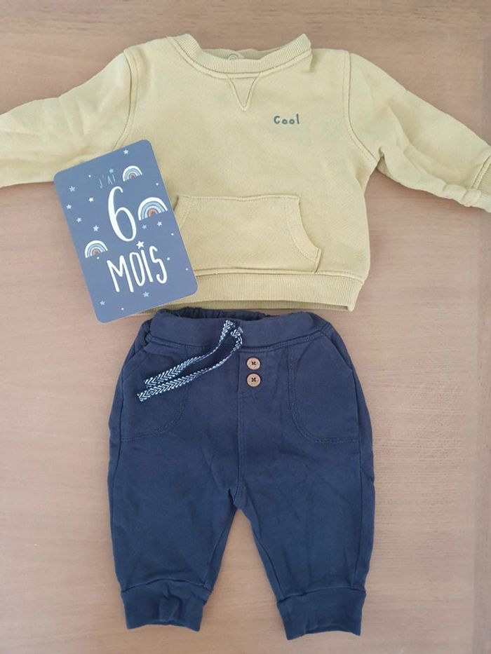 Jogging gris tape a l'œil 68 cm Sweat jaune kiabi 63-69 cm 6 mois #coralielssr_garçon_6mois