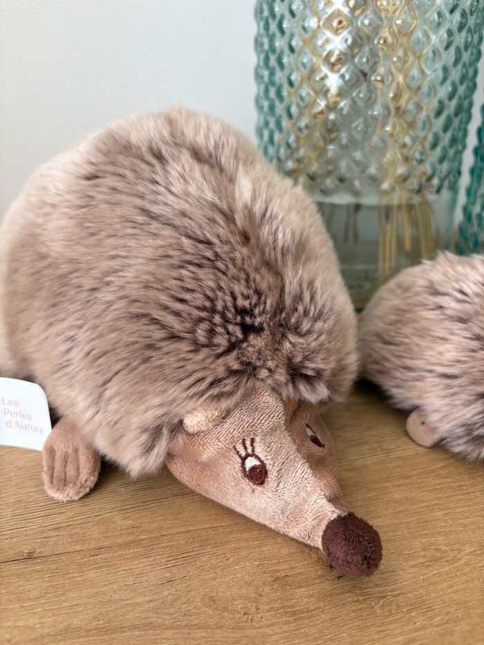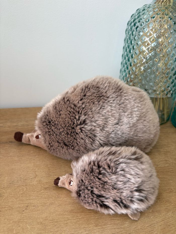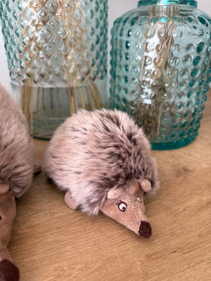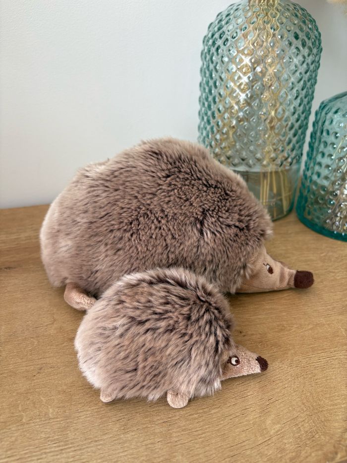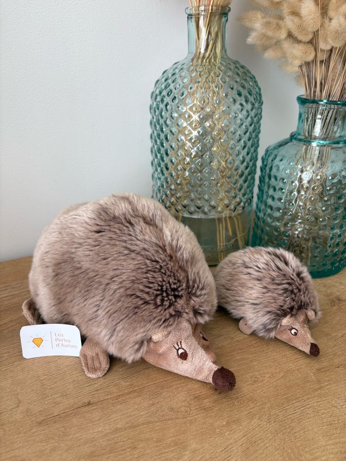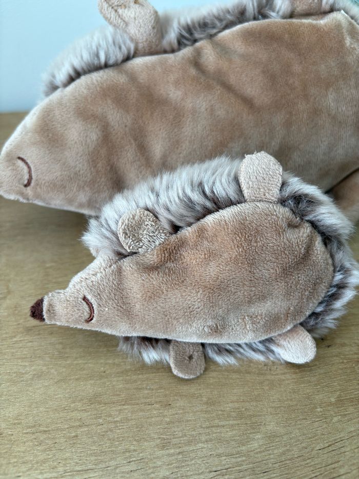 2 peluches maman et bébé hérisson Elles sont magnifiques et en très bon état (Petit trou à la patte du bébé dû à l accroche)
