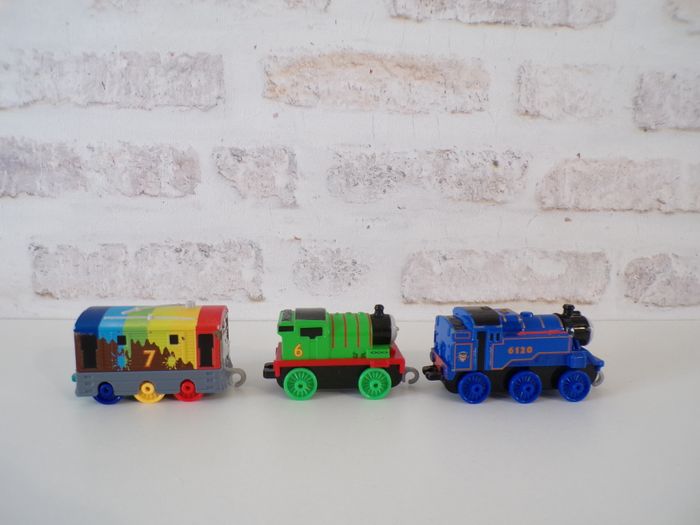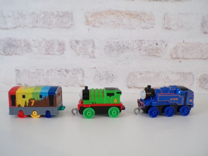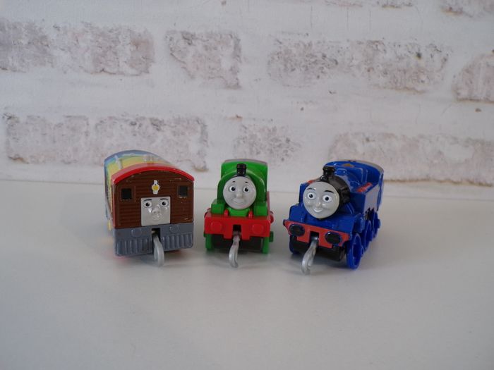 Trains - Thomas et ses amis - Toby - Percy - Belle, Thomas and friends, Thomas & ses amis, tren, trenini, trein, zug, en bon état. Les locomotives s'appellent Toby, Belle, Percy.