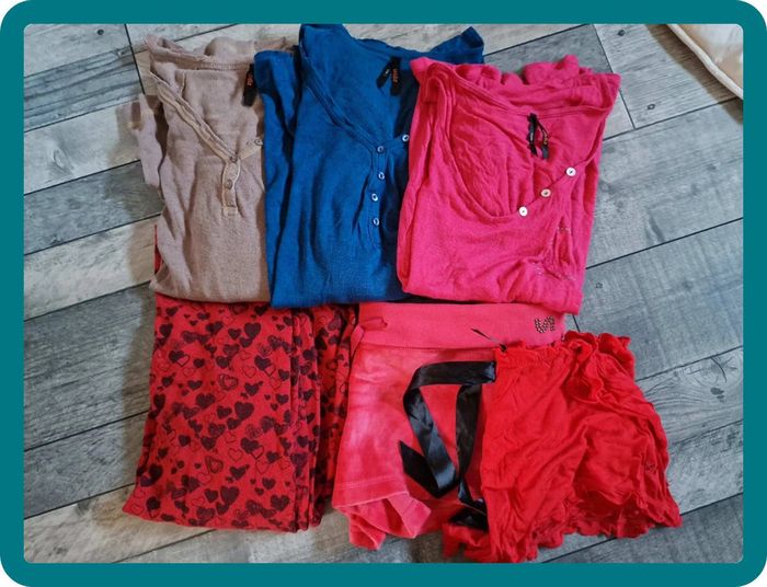 5 pièces taille L 2 mini shorts (1 neuf 1 TBE) 1 gilet 3 t shirts Défauts/marques d'usure visibles sur photos de détail (essentiellement des bouloches de lavage)