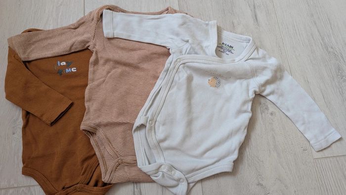 Lot de 3 bodies manches longues, ouverture sur le devant. Très bon état, taille 3 mois.