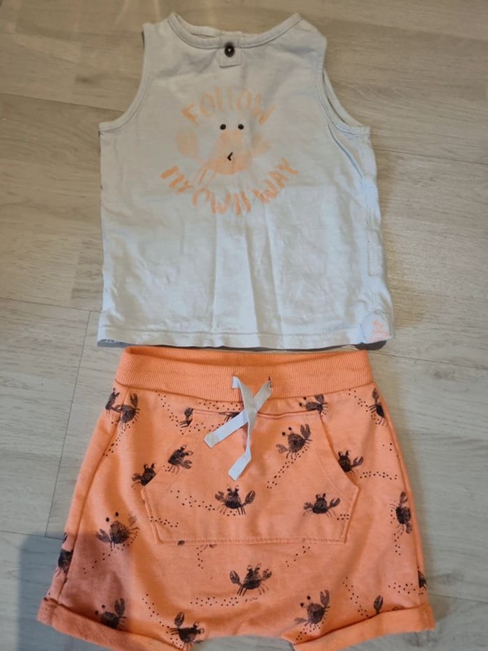 Ensemble short T shirt 18 mois (Le crabe sur t-shirt disparaît un peu)
