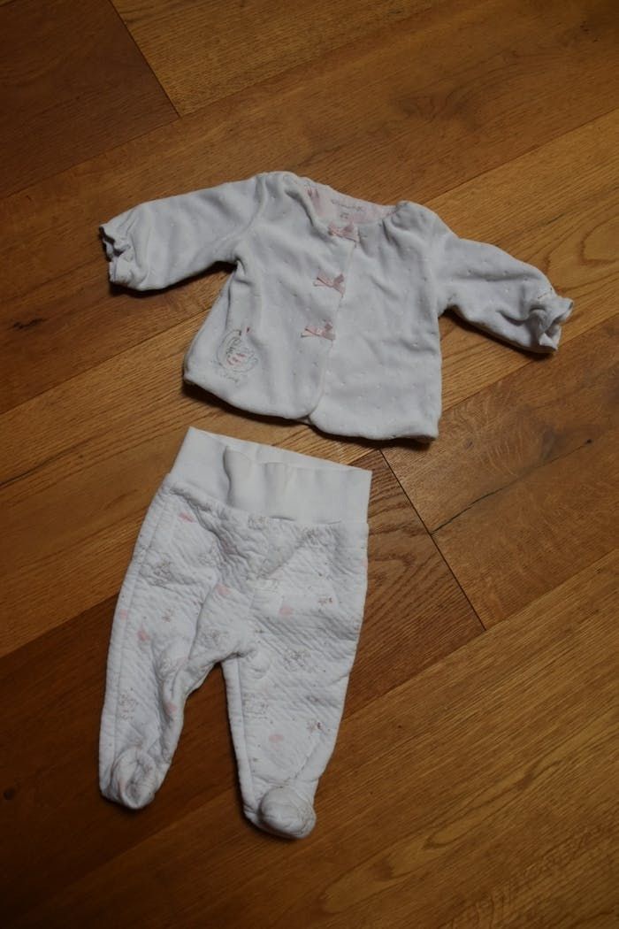 Je vends ce joli ensemble de marque sergent major. Il est de taille 1mois/53cm En parfait état, il n'est pas abîmé ni tâché. Il n'a servi que pour 1 bébé