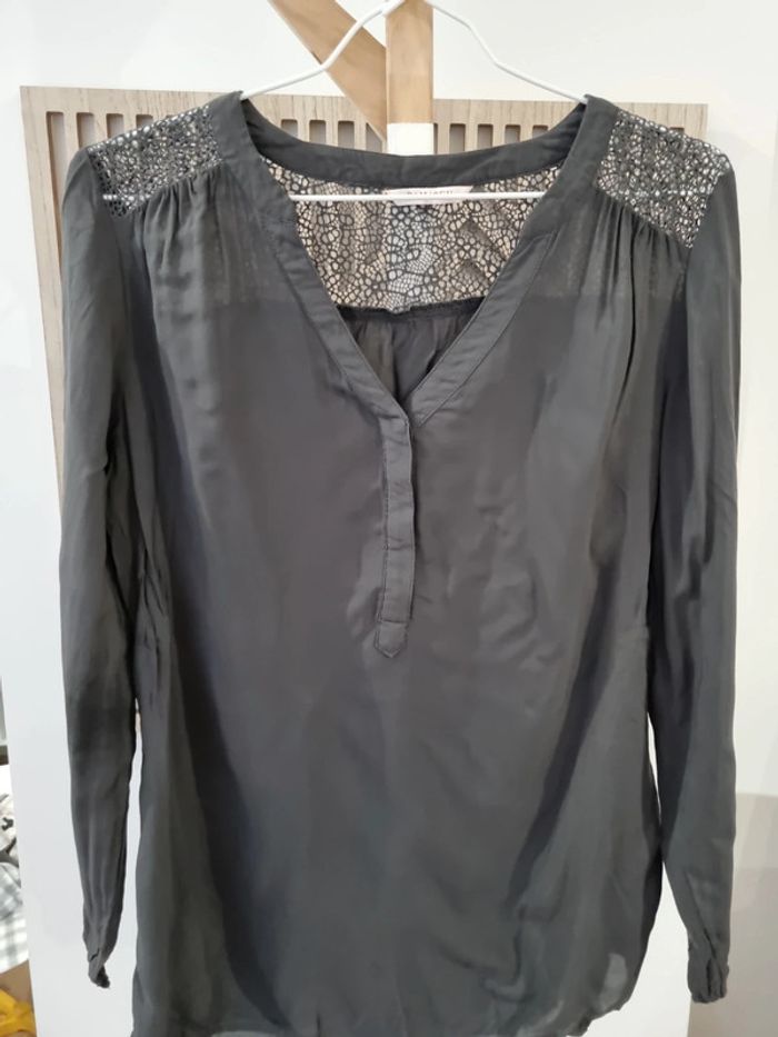 Blouse grise, dentelle, Taille 38 - photo numéro 2