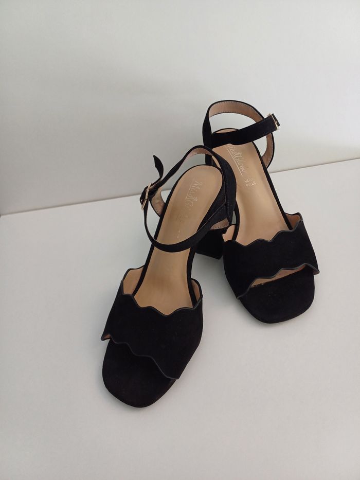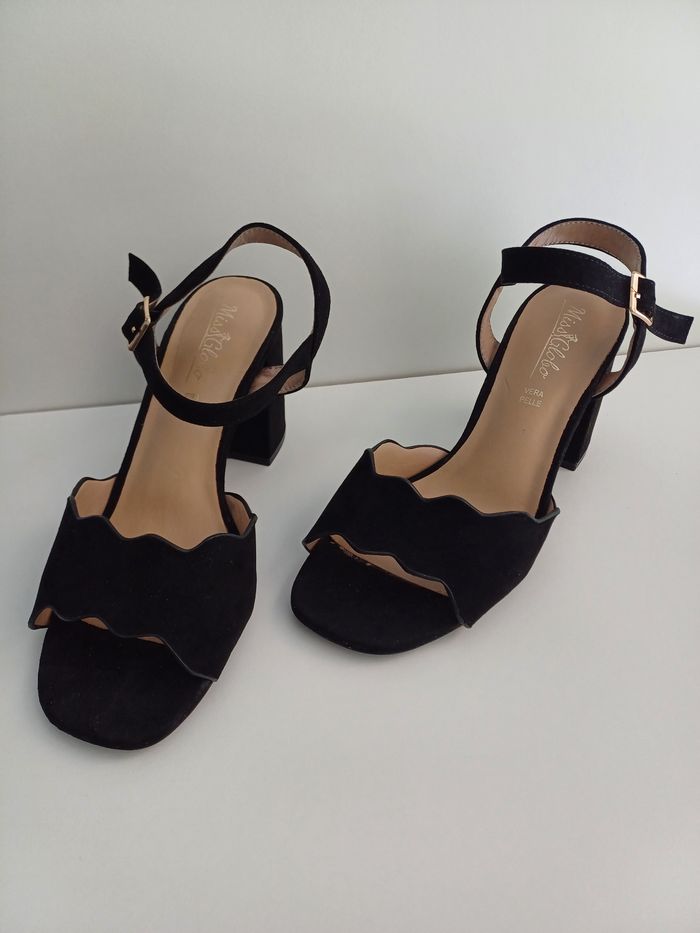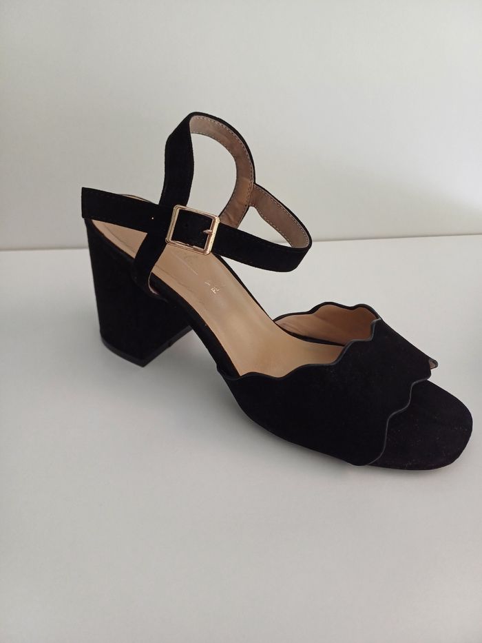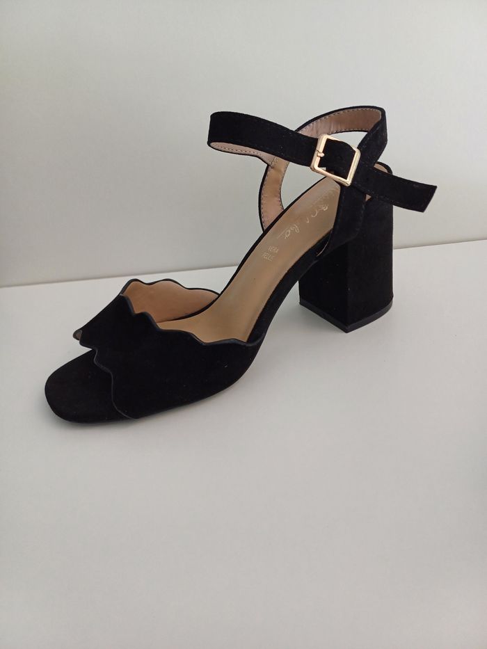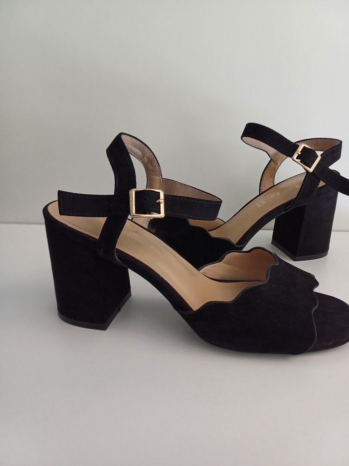Sandales à talons bloc stable et design à brides ondulée, élégantes et confortable.