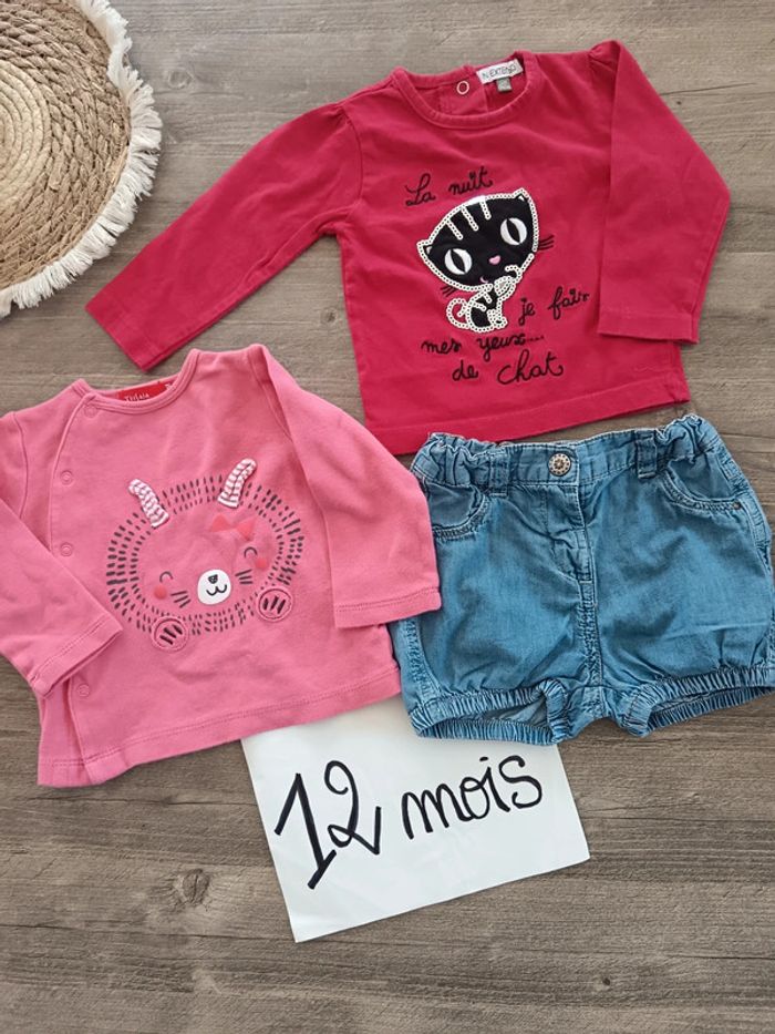 🌞lot de 2 t-shirts et 1 short 12 mois trĂšs Bon Ă©tat gĂ©nĂ©ral