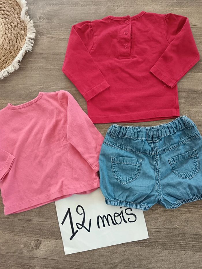 🌞lot de 2 t-shirts et 1 short 12 mois trĂšs Bon Ă©tat gĂ©nĂ©ral - photo numĂ©ro 3